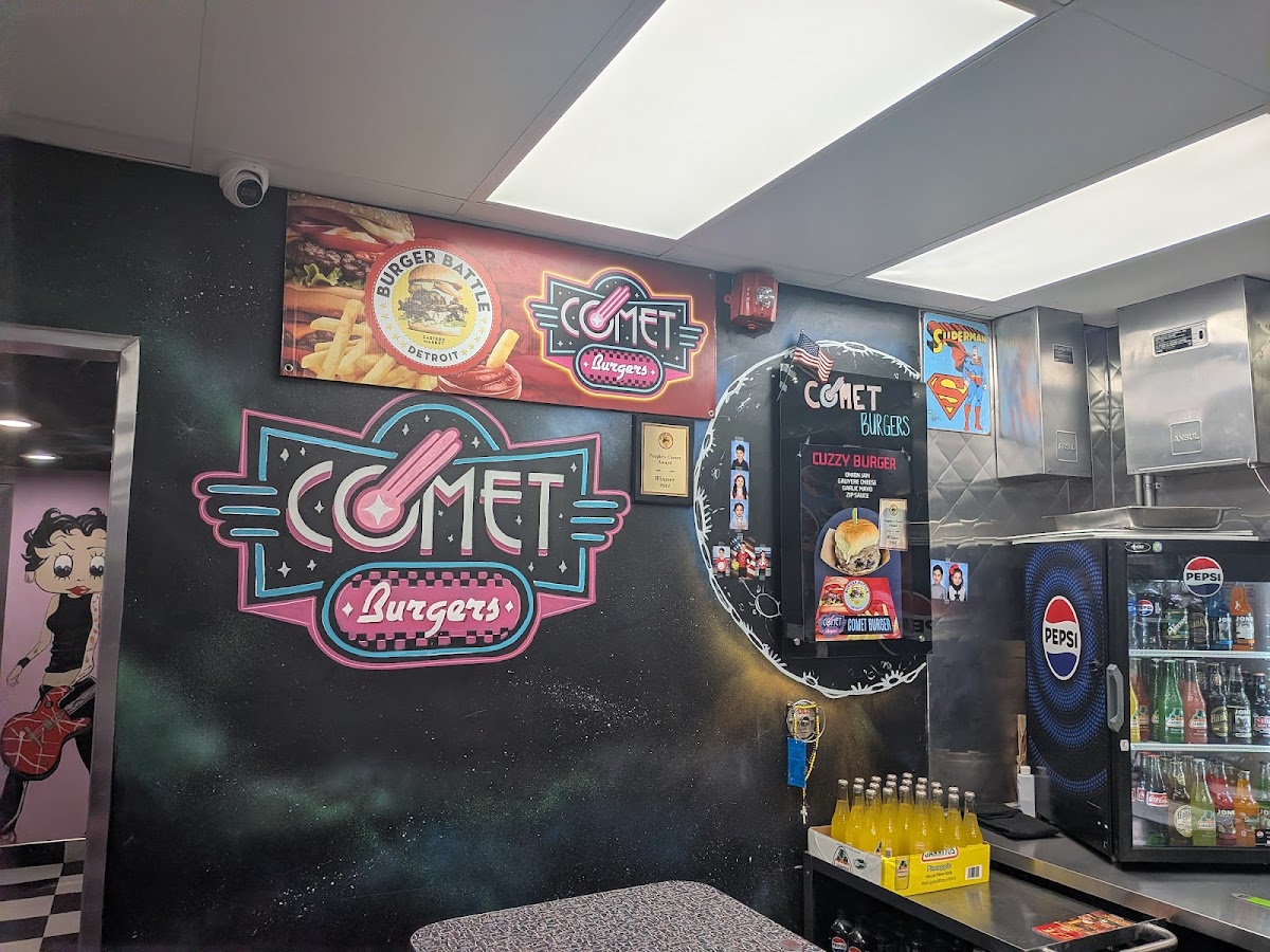 At Comet Burgers, we celebrate the fusion of classic diner charm and contemporary cuisine. Nestled in Royal Oak, MI, our restaurant invites you to indulge in an array of scrumptious burgers, including the award-winning Cuzzy Burger, and a selection of delightful vegetarian options. With a vibrant atmosphere reminiscent of 80s diners, we offer something for everyone—from families to late-night diners. Our excellent service complements the fantastic flavors, making each visit memorable. Whether you're here for a quick takeout or a fun dining experience, Comet Burgers is your destination for good food and great times. Come join us!